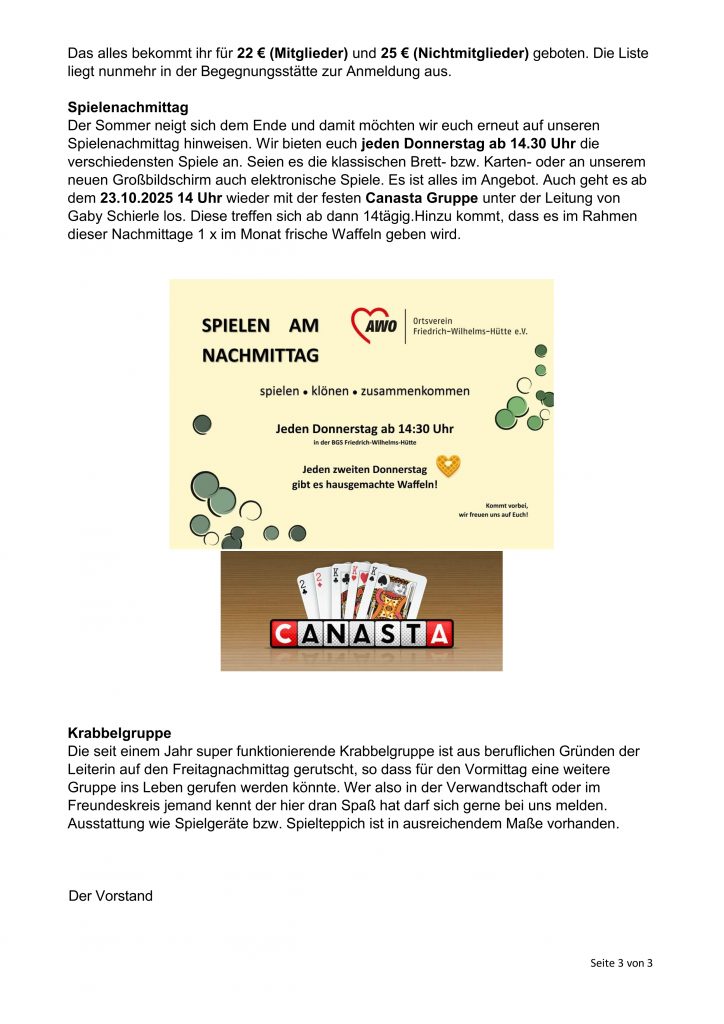 Wir möchten an dieser Stelle über unseren Verein, unsere Angebote und Veranstaltungen informieren.
