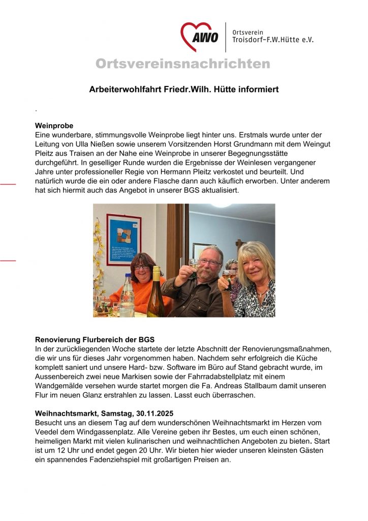 Willkommen auf der Homepage des AWO Ortsvereins Troisdorf – Friedrich-Wilhelms-Hütte e.V..
