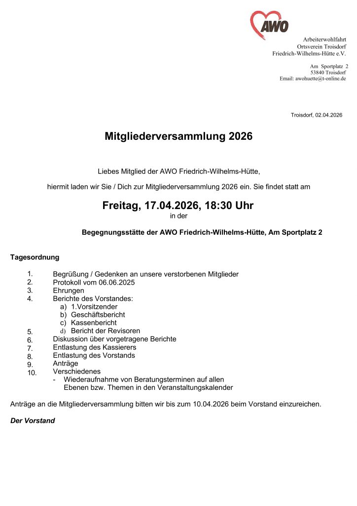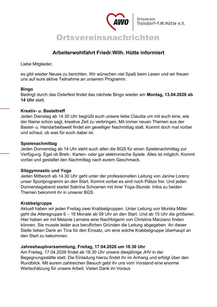 Willkommen auf der Homepage des AWO Ortsvereins Troisdorf – Friedrich-Wilhelms-Hütte e.V..
