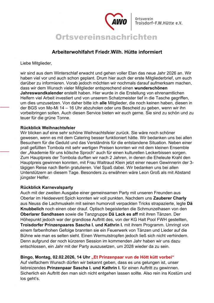 Willkommen auf der Homepage des AWO Ortsvereins Troisdorf – Friedrich-Wilhelms-Hütte e.V..